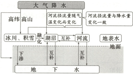 充分体现了陆地水体间的相互关系。(如右图)