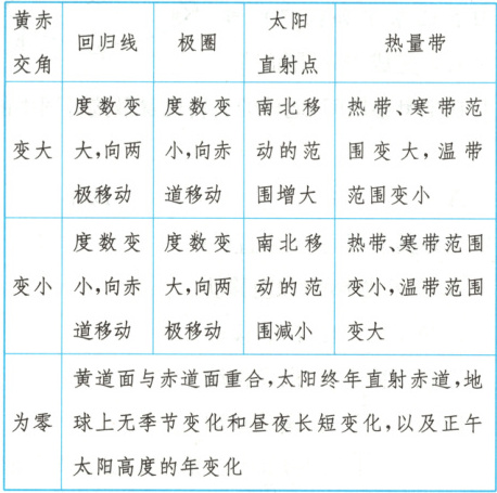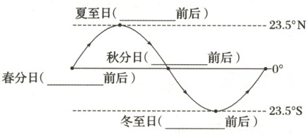 ②冬至日至次年夏至日期间,太阳直射点向北移动;夏至日至冬至日期间太阳直射点向南移动。