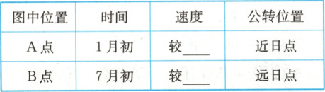 1. 当地球公转速度为图1中P时,地球位于图2公转轨道的(