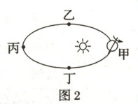 2. 当地球在图2公转轨道上由甲点运行至乙点过程中(