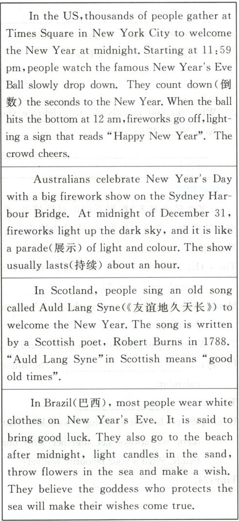 19. What colour clothes do most Brazilian people wear on New Year’s Eve?