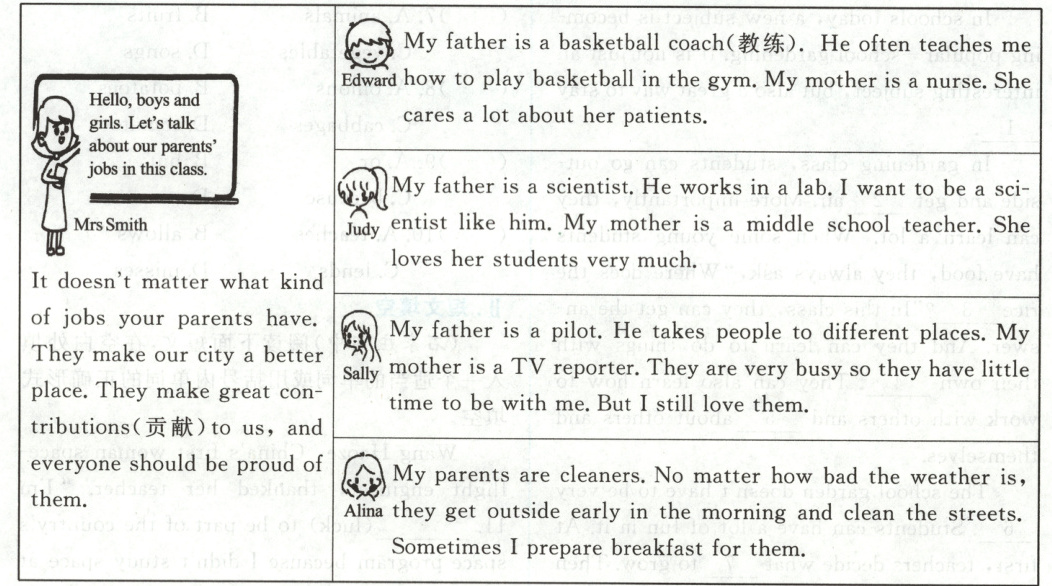 )28. Who cooks for his/her parents?A. Edward. B. Judy. C. Sally. D. Alina.