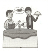 Waiter: Here's the menu. What would you like to eat?