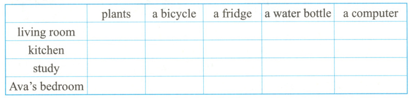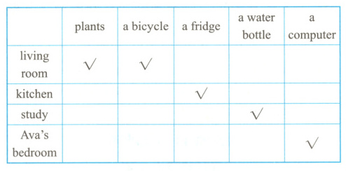 Hi, my name is Leo. This is my new house. There is an old tree in front of the house. Look, this is the living room. There are many plants in the living room. There is a bicycle behind the door. Look, my mother is cooking in the kitchen. There is a fridge, a dishwasher and a toaster in it! In the study, there are many crayons and pencils on the desk, because my brother Max likes drawing cartoons on it. There is a water bottle between two books. Listen, my sister Ava is singing in her bedroom. There are two photos beside her computer. She is very cute. Do you like my house?