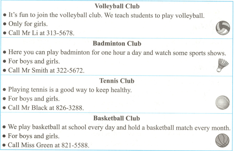 ) 1. Students can call 821 - 5588 if they want to join the Badminton Club.(
