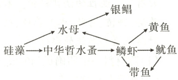 9. 九月中旬,休渔期结束后,连云港市民的餐桌上有了新鲜的带鱼、黄鱼、银鲳、鱿鱼等美味海产品。如图为某同学查阅资料后整理的食物网,下列相关叙述正确的是(