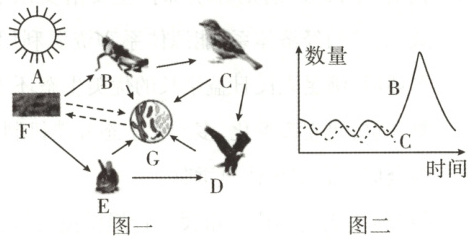 (1) 从生态系统的组成成分看,图一中G属于生物部分的