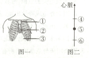 D.对伤者进行胸外按压急救时,正确的按压部位是图一中②胸骨中下 1/3 交界处