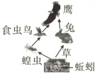 B.“蝗虫→食虫鸟→鹰”是其中一条食物链
