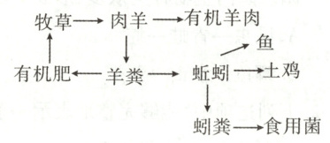 D.图中最长的一条食物链是牧草→肉羊→羊粪→蚯蚓→蚓粪→食用菌