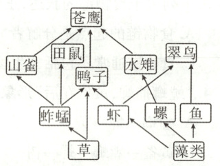 )A.含有鸭子的食物链有3条,含有苍鹰的食物链有4条