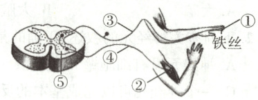 )A.被铁丝扎到后,先感觉痛然后再缩手