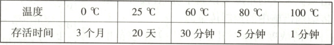 。(4) 科学研究表明,在不同温度的水中,志贺氏菌存活的能力有很大差异,结果如表: