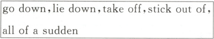 11.took off 12.All of a sudden 13.lay down 14.going down 15.stuck out of