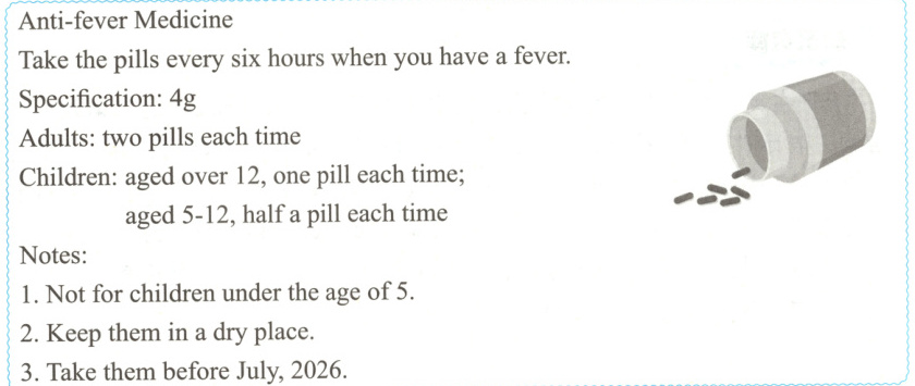 () 3. Tom took a pill at8:00in the morning. What time should he take the pillnext time?