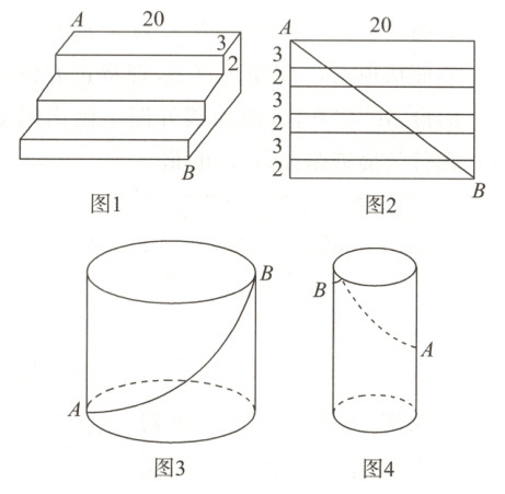 数学综合与实践活动课上,老师提出如下问题:有一个三级台阶,它每一级的长、宽、高分别为20,3,2,A和B是一个台阶两个相对的端点。