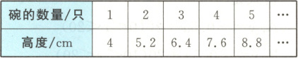 (2)用$h$(单位:$cm$)表示这摞碗的高度,用$x$(单位:只)表示这摞碗的数量,请用含有$x$的代数式表示$h$。