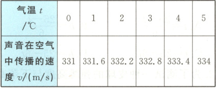 $m/s$。(3)声音在空气中传播的速度$v(m/s)$与气温$t(^{\circ}C)$的关系式可以表示为__________。