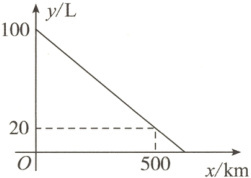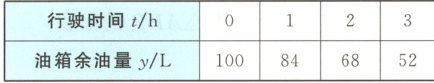 4. 某汽车生产厂家对其生产的汽车进行耗油量实验,实验中油箱中的余油量$y(L)$与行驶时间$t(h)$的关系如下表所示,与行驶路程$x(km)$的关系如图所示. 请根据这些信息计算,此汽车在实验中的平均速度为(