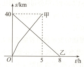 8. A,B两地相距$40$km,甲从A地出发向B地前进,乙从B地出发向A地前进,两人沿同一直线同时出发,甲先以$12$km/h的速度前进$1$h,然后减慢速度继续匀速前进,甲、乙两人离A地的距离$s$(km)与时间$t$(h)的关系如图所示,则甲出发