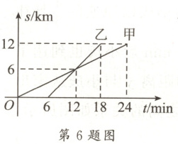 6. 如图所示,甲、乙两人以相同的路线前往离学校$12$km的地方参加植树活动,图中$l_{甲}$,$l_{乙}$分别表示甲、乙两人前往目的地所行驶的路程$s$(km)与时间$t$(min)的关系.根据图象判断,下列说法错误的是(