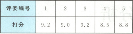 4. 在“讲好数学故事”的比赛中,5 个评委老师给小明的打分如下表所示,按照规则,去掉一个最高分,去掉一个最低分,其余评委的平均分即为选手的最后得分,则小明的最后得分是