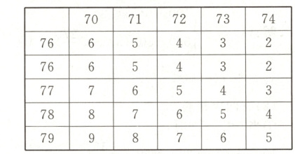由表可知,共有25种等可能的结果,其中他们的分数之差不低于8分的有3种结果,所以他们的分数之差不低于8分的概率为$\frac{3}{25}.$