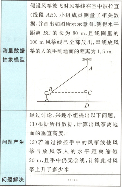 答:此时风筝上升了20 m.