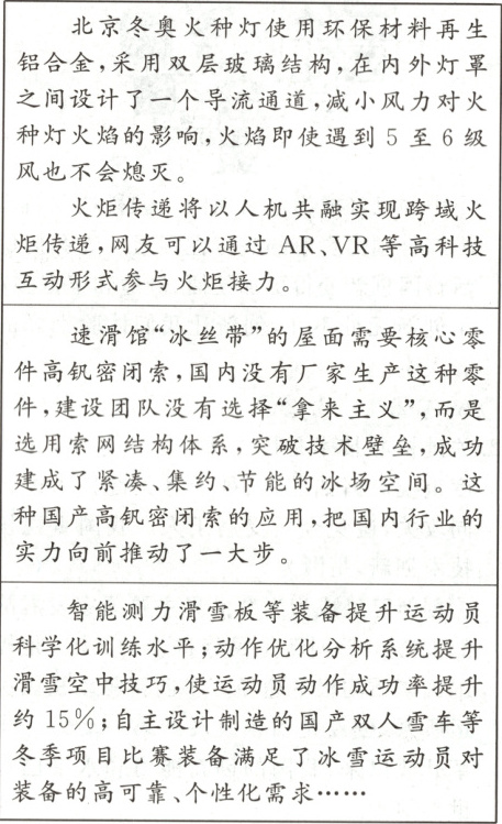 (2)网友说:“2022年冬奥会不仅是一场体育的盛会,更是一场闪耀创新魅力的盛会”,结合板报一,分析“体育盛会”到“创新盛会”说明了什么?