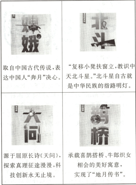 1. (2024·成都)下图是我国一些重大航天工程的名称,它们生动形象,极具中国气派。这一命名(