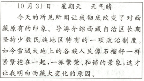 (1) 日记中的“这才让我明白西藏大变化的原因”。请指出“原因”是什么。