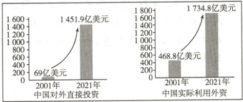 7. (2024·南充)加入世界贸易组织以来,中国与经济全球化结伴快行,中国对全球经济增长的年均贡献率在30%左右。观察下面两幅图,从中可以看出我国(