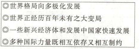 )①面对当前世界发展趋势,深入合作、寻求发展已成为各国共识