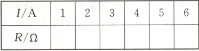 13. 用电器的电流$I$、电阻$R$、电功率$P$之间满足关系式$P = I^{2}R$。已知$P = 5\ W$,填写下表并回答问题。