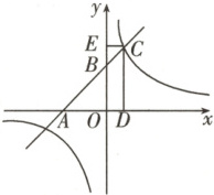 4. (2023·安徽)如图,一次函数 $ y = x + k(k > 0) $ 的图象与 $ x $ 轴和 $ y $ 轴分别交于点 $ A $ 和点 $ B $,与反比例函数 $ y = \frac{k}{x} $ 的图象在第一象限内交于点 $ C $,$ CD \perp x $ 轴,$ CE \perp y $ 轴,垂足分别为点 $ D,E $。当矩形 $ ODCE $ 与 $ \triangle OAB $ 的面积相等时,$ k $ 的值为