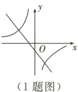 1. 一次函数 $ y = kx + b(k \neq 0) $ 与反比例函数 $ y = \frac{k}{x}(k \neq 0) $ 在同一直角坐标系上的大致图象如图所示,则 $ k,b $ 的取值范围是(