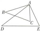 3. 如图,在$\triangle ABC$和$\triangle ADE$中,$\frac{AB}{AD}=\frac{BC}{DE}=\frac{AC}{AE}$,$\angle BAD = 20^{\circ}$,则$\angle CAE$的度数为