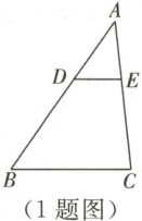 1. (2024·凉山州)如图,在$\triangle ABC$中,点$D$,$E$分别在边$AB$,$AC$上。若$DE// BC$,$\frac{AD}{DB}=\frac{2}{3}$,$DE = 6cm$,则$BC$的长为(