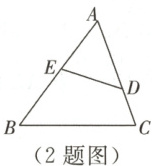 2. (2023·四川成都武侯模拟)如图,在$\triangle ABC$中,$AB = 5$,$D$、$E$分别是边$AC$和$AB$上的点,且$\angle AED=\angle C$,若$AD· BC=\frac{25}{2}$,则$DE$的长为