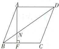 4. (2023·甘肃兰州西固模拟)如图,在菱形$ABCD$中,$AB = 3$,$AF\perp BC$于点$F$,$FC = 2$,$AF$与$DB$交于点$N$,则$AN =$