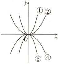10. 已知四条抛物线所对应的函数解析式分别为:①$y = ax^{2}$;②$y = bx^{2}$;③$y = cx^{2}$;④$y = dx^{2}$,其函数图象如图所示。比较$a$,$b$,$c$,$d$的大小: