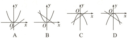 9. 当$ab > 0$时,$y = ax^{2}$与$y = ax + b$在同一坐标系中的图象大致是(