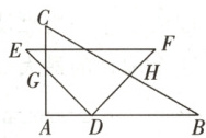 12. 一副三角板($\triangle ABC$与$\triangle DEF$)如图放置,点$D$在$AB$边上滑动,$DE$交$AC$于点$G$,$DF$交$BC$于点$H$,且在滑动过程中始终保持$DG = DH$。若$AC = 2$,则$\triangle BDH$面积的最大值是(