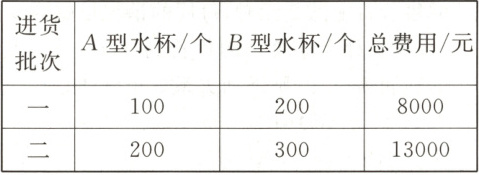 7. (2023·怀化)某超市从厂家购进 $ A $,$ B $ 两种型号的水杯,两次购进水杯的情况如表: