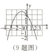 9. 抛物线 $ y = ax^{2} + bx + c(a < 0) $ 如图所示,则关于 $ x $ 的不等式 $ ax^{2} + bx + c > 0 $ 的解集是(