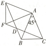 11. 如图,在△ABC中,AB=AC=1,∠BAC=45°,△AEF是由△ABC绕点A按顺时针方向旋转得到的,连接BE,CF相交于点D.