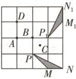 1. 如图,4×4的正方形网格中,△PMN绕某点旋转一定的角度,得到△P₁M₁N₁,其旋转中心是 (