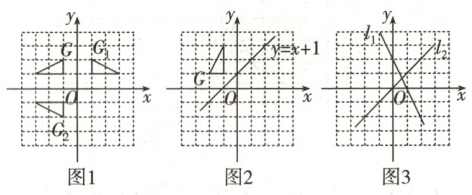 度,可以得到图形G₂。(2)在图2中分别画出G关于y轴和直线y=x+1的对称图形G₁,G₂,将图形G₁绕点