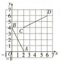 2. (2023·烟台)如图,已知点A(2,0),B(0,4),C(2,4),D(6,6),连接AB,CD,将线段AB绕着某一点旋转一定角度,使其与线段CD重合(点A与点C重合,点B与点D重合),则这个旋转中心的坐标为