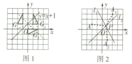 (1)三角形在平面直角坐标系中的位置如图1所示,简称G,G关于y轴的对称图形为G₁,关于x轴的对称图形为G₂,则将图形G₁绕点